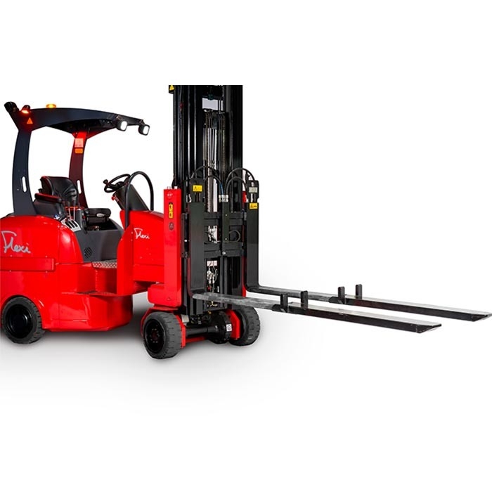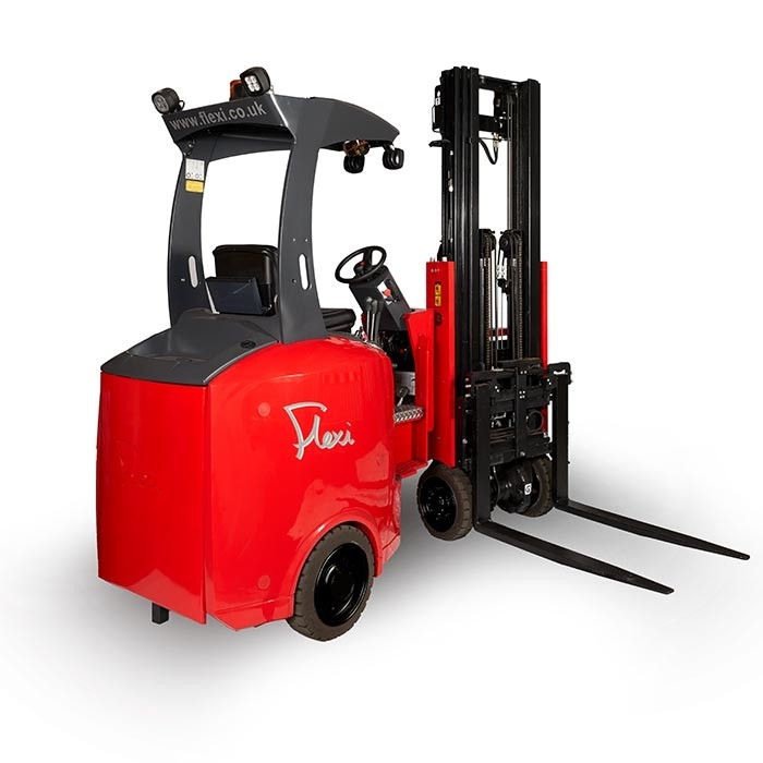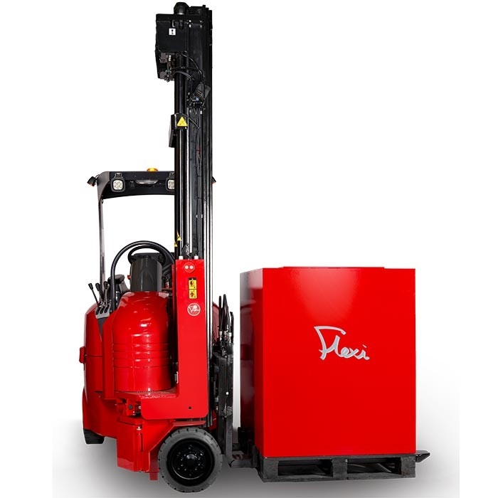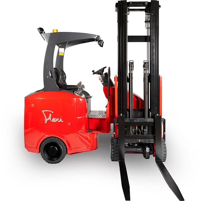 Enables Flexi® to manoeuvre easily in very narrow aisles. Maximise warehouse space utilisation. Can do the combined job of a Counterbalance and Reach Truck for one price. Four-wheel stability works in all applications, both indoors and outdoors.