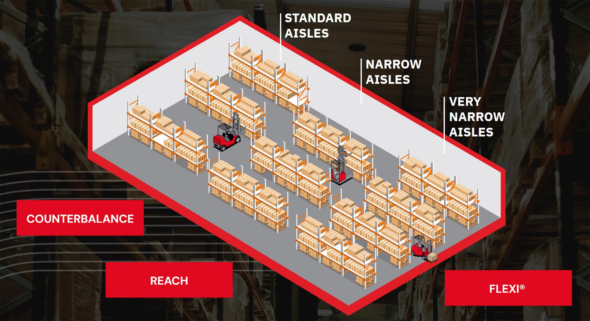 By optimising previously inaccessible space in the warehouse aisles, Flexi® can deliver: 30% increase in storage versus a conventional reach truck. 50% increase in storage versus a conventional counterbalance truck. In addition to the increase in storage, Flexi® also delivers operational efficiencies by